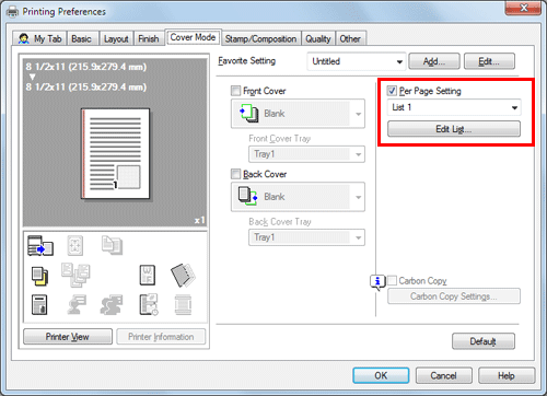 In the [Cover Mode] tab, select the [Per Page Setting] check box, then click [Edit List...].