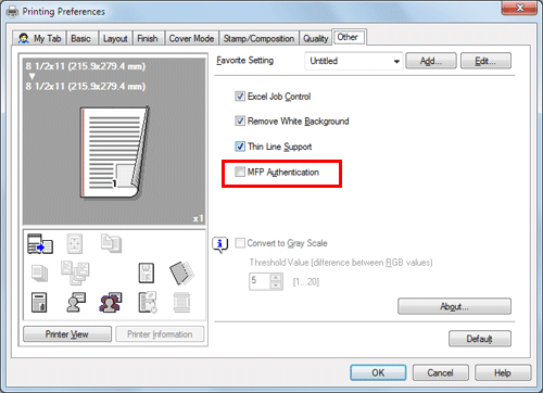 To perform MFP authentication when external server authentication is used together, select the [MFP Authentication] check box in the [Other] tab.