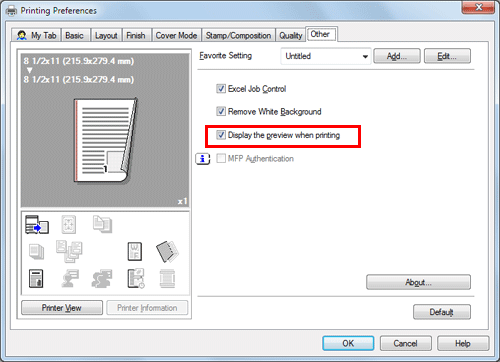 In the [Other] tab, select the [Display the preview when printing] check box.