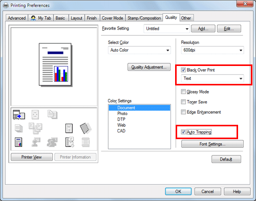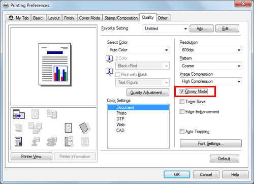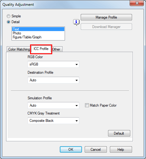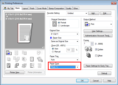 In [Paper Type] in the [Basic] tab, select the type of paper for printing. This function is enabled when [Paper Tray] is set to [Auto].