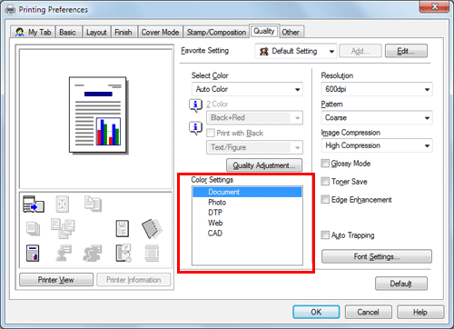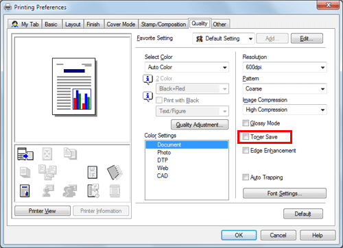 When you print a large number of copies, use of the Proof Print function will prevent a large number of misprints being created, thereby reducing the amount of waste paper generated. For details, refer to Here.