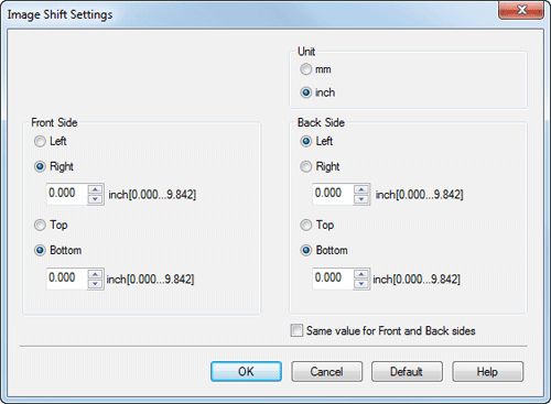 When printing images on both sides, selecting the [Same value for Front and Back sides] check box applies the same settings to both sides.