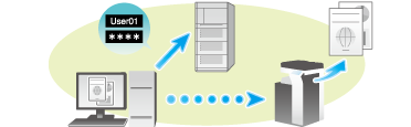 Since you need to be authenticated in this machine to print the data saved in the box, this function is suitable for safely printing highly confidential documents. When you are successfully authenticated, the print data of the login user is automatically printed. This enhances security as well as ensures smooth operation.