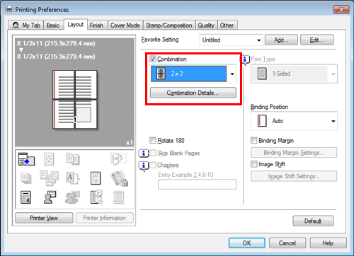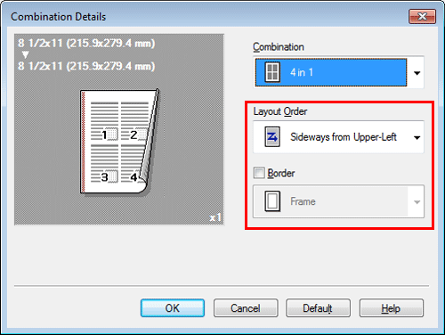 If necessary, click [Combination Details...] to set the page layout order and whether to input border lines between pages.