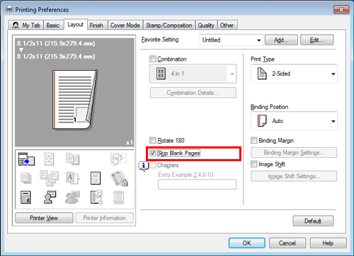 [Skip Blank Pages] is available only when the printer driver for Windows is used.