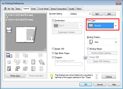 By using this function in combination with the 2-Sided Print function ([Print Type]: [2-Sided]), you can save more amount of paper.