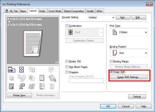 You can fine tune the print position of the image upward, downward, rightward, and leftward with respect to the paper. When an image is printed on the back side, you can also fine tune its position.