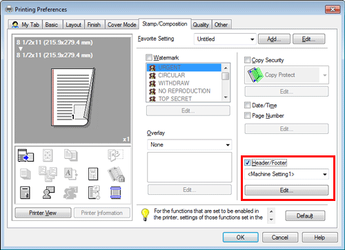 On the [Stamp/Composition] tab, select the [Copy Security] check box, and then select [Copy Protect].