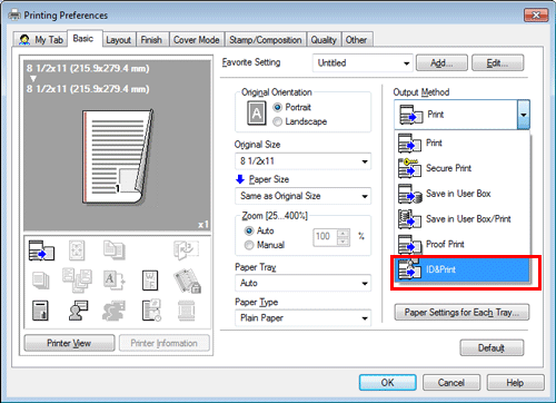 In [Output Method] in the [Basic] tab, select [Proof Print].