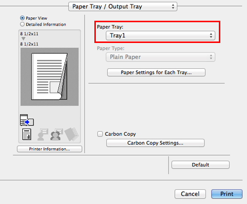 In [Paper Tray:] in [Paper Tray / Output Tray], select the paper tray for printing.