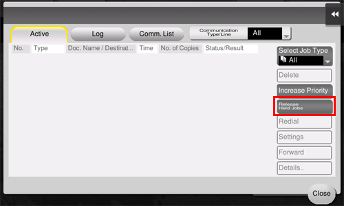 2. While [Active] is displayed, tap [Release Held Jobs].