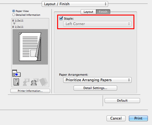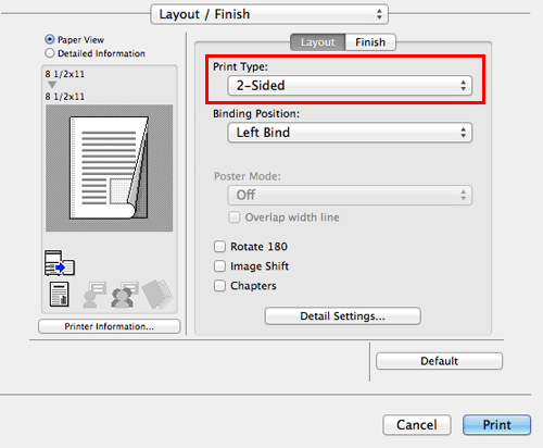 In [Print Type:] in [Layout / Finish], select [2-Sided]. [2-Sided] is specified by default.