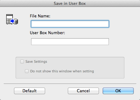 • When the [Save Settings] check box is selected, the settings are saved. When the [Do not show this window when setting] check box is selected, this dialog box is not displayed next time. If you always use the same file name and box number, selecting this check box eliminates the need for entering them each time.