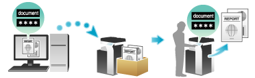 Since you need to be authenticated in this machine to print the data saved in the box, this function is suitable for safely printing highly confidential documents. When you are successfully authenticated, the print data of the login user is automatically printed. This enhances security as well as ensures smooth operation.