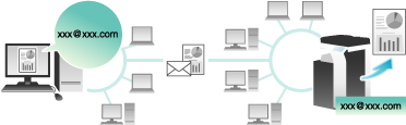 If you send an E-mail to the E-mail address of the machine, you can print a PDF, Compact PDF, JPEG, TIFF, XPS, Compact XPS, OOXML (.docx/.xlsx/.pptx), or PPML (.ppml/.vdx/.zip) file on the computer using the machine without using the printer driver.