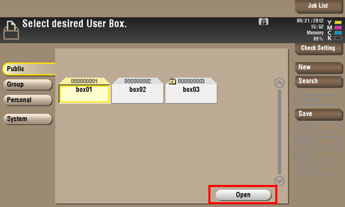 Select the desired User Box, then tap [Open].