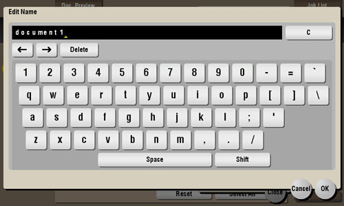 Select a file, then tap [Other] - [Edit Name]. Now you can rename the file. Enter a new name from the Touch Panel.