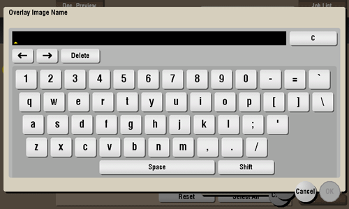 To register an overlay image by overwriting an existing one, select the registered key and tap [Overwrite].