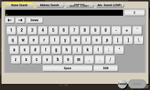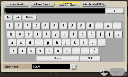 1. Tap [Addr. Search] - [Search] - [Address Search (LDAP)] or [Adv. Search (LDAP)].