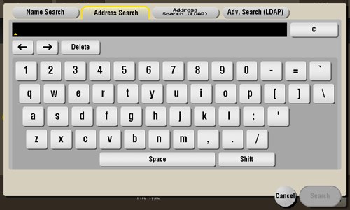 • When searching for a destination by E-mail address or computer name, tap [Address Search].