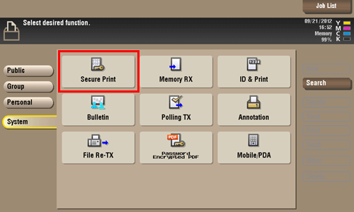 In the following example, [Prohibited Functions When Authentication Error] function has been set to [Mode 1].