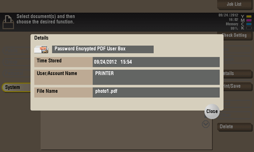Select a file, then tap [Delete]. The file is deleted. You can select multiple files and delete them simultaneously. Check the file details, then tap [Yes].