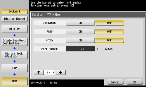 • You can also register an FTP destination using Web Connection. For details, refer to Here.