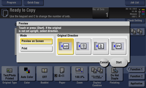 You can check the finishing image of a copy in the Touch Panel before copying.