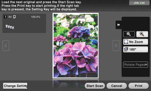 Check the preview display, and rotate the page or change settings as required.