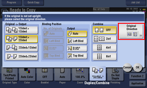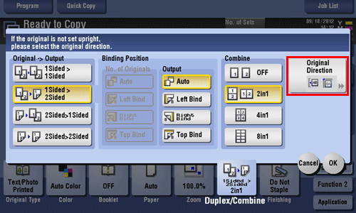 • For [2Sided > 1Sided], select the binding position of [No. of Originals].
