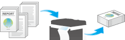 Originals are scanned with different settings for each set, and copied collectively. Use this function when various types of originals are mixed, such as 1-sided original to be printed on one side of paper, and 2-sided original to be copied by enlarging. After all originals have been scanned, you can add page numbers or finishing functions, such as sort, to copy them.