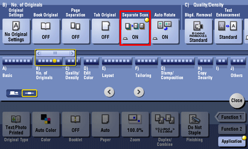 Tap [Application] - [No. of Originals] - [Separate Scan], and set to [ON].