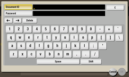 Enter the [Document ID] and [Password] for the secure document, then tap [OK].