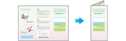 The pages in the original data are arranged and spread out in booklet format and printed on both sides of sheets. You can also specify the binding position, or insert front and back covers.