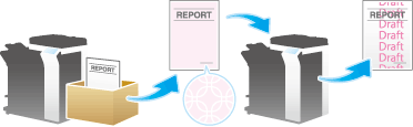 Text such as "PLEASE REPLY" and "DO NOT COPY" are printed on the first page or all pages. You can select the text to be added from the registered fix stamps and arbitrary registered stamps.
