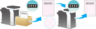 Password Copy is a copy protection function that prints concealed security watermarks such as "Private" or a date in the background to prevent unauthorized copying, and embeds a password for the password copy function on all printed sheets.