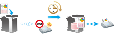 If a fax transmission fails due to a network or recipient machine problem, the machine automatically resends (redials) the fax after a certain period of time has elapsed. By default, the machine redials up to three times at three-minute intervals.