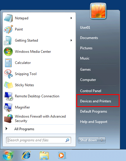 • In Windows 7/Server 2008 R2, click the Start menu, then select [Devices and Printers].