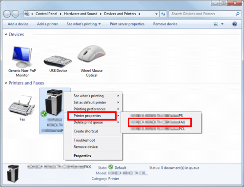 • In Windows 7/8/8.1/Server 2008 R2/Server 2012/Server 2012 R2, right-click the icon of the installed printer, and from [Printer Properties], click the displayed printer name.