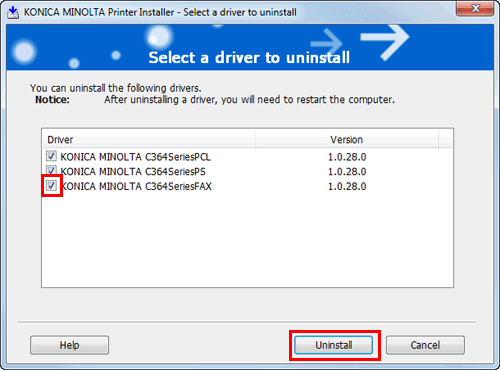 6. Select the fax driver you wish to delete, then click [Uninstall].