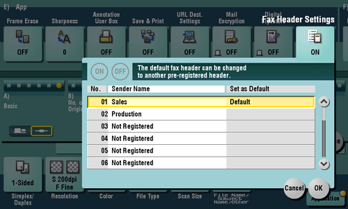 HomeDescriptions of Functions / Utility KeysFax Header Settings