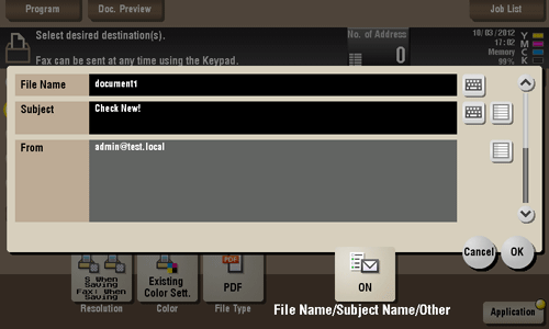 When sending by E-mail, you can specify the subject and message text of an E-mail and change the sender E-mail address ("From" address).