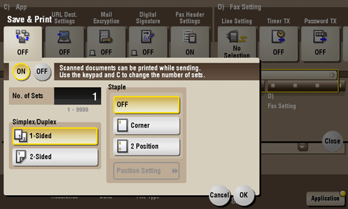 [ON]/[OFF] | Select [ON] to send and print at the same time. |