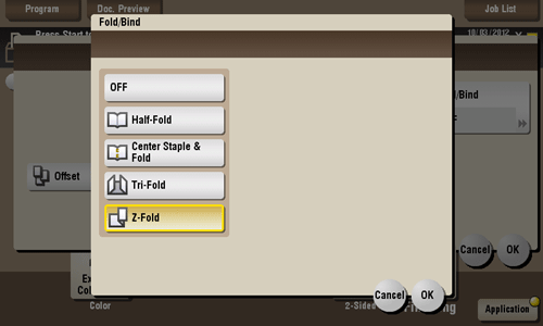 To use the Z-Fold function, the Finisher FS-535 and Z Folding Unit ZU-606 are required (only for bizhub C554e).