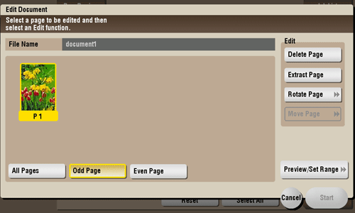 Extracts a selected page. When there are too many pages to be deleted, selecting the page only you need to reserve eliminates the need for deleting after selecting many pages.
