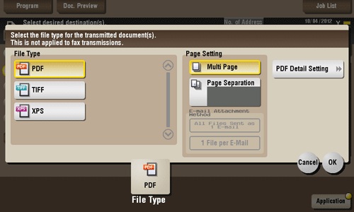 [PDF Detail Setting] | If [PDF] is selected for file format, you can configure the PDF option settings.