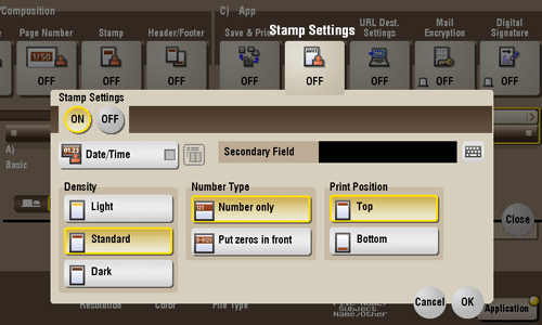 [Date/Time] | Select a format for the date and time to be printed. Select the [Date/Time] box and tap the icon on the right side of the screen, then you can select a Date/Time format from the shortcut menu. |