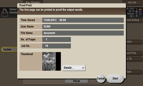 If you tap [Details..] or a thumbnail image, you can rotate or delete a page while checking a file preview image.