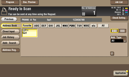 From the Address Book, select a destination registered on this machine. You can broadcast files by selecting multiple destinations.