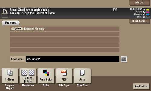 You can set a file name and the storage options when saving the scanned data of an original on an external memory.